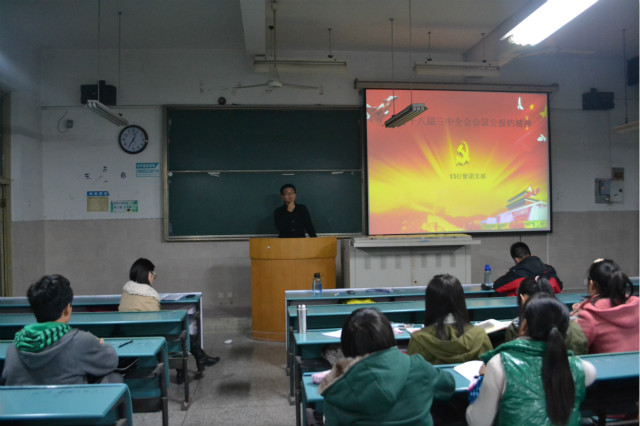 11月21日晚,13级行管全体同学在2020301教室召开了“走近十八届三中全会,解读会议公报精神”的主题班会。这是本班级就学习贯彻十八届三中全会精神所举行的第二次集体学习会,本次班会由团支部书记樊浩同学主持,13行管辅导员瞿津津参加。