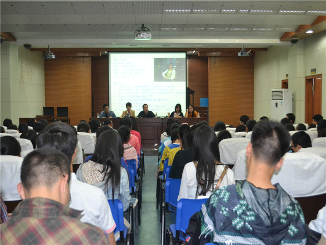 10月9日晚,学院在模拟法庭举办2013级新老生交流会,法学和行政管理专业大二、大三、大四的优秀员工代表受邀出席,所有2013级新生到会聆听。