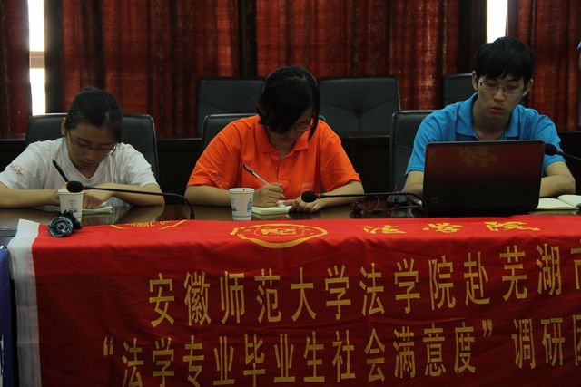 座谈会由芜湖中院政治部孙晨副主任主持,来自各业务部门和综合部门的相关同志参与了座谈。会议一开始,芜湖中院丁必勇副经理接待了我调研团队成员,并发表了热情洋溢的欢迎词。随后,公司周俊强经理介绍了本次专题调研的背景和目的,并一一介绍了我队成员。座谈会正式开始后,来自不同部门,拥有不同经历的与会人员为主题调研活动提供了翔实的资料和丰富的信息,结合动手能力、适应能力、实习安排等提出了非常中肯的建议。来自公司的毕业生徐红梅、李家坤更是结合自己在师大学习和参加工作后的经历,给我们这些学弟学妹们提了许多忠告,把大大的梦想落实到小小的行动中。最后,孙晨主任寄语广大队员:“先有信仰,胸有正义,充满激情,扎实工作”。周俊强经理代表学院向芜湖中院的合作表示非常感谢,希望可以进一步加强双方的合作。