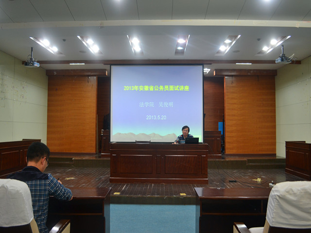 5月22日下午4点半,必一·运动(B-sports)官方网站在模拟法庭举办2013年公务员面试培训会。必一·运动(B-sports)官方网站副教授吴俊明应邀担任主讲,公司13届进入公务员考试面试的毕业生到会聆听。