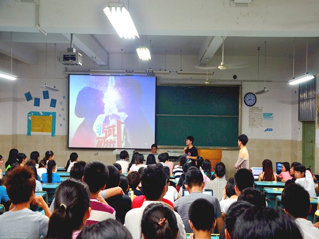 为与时尚接轨,促进班级交流,5月23日晚七点,12法学行政三班与行政二班联手于2010304教室举办“非诚勿扰”联谊班会。11级杨天敬,赵凯迪两位同学作为特别嘉宾受邀出席此次班会。班会由陶然主持。两个班同学悉数到场观看此次联谊班会。