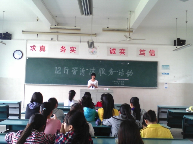 为发扬老员工热爱劳动,服务他人的精神。5月8日下午三点,12行管在教学楼2栋举办“清洁服务”活动,12行管全体同学到场参加。