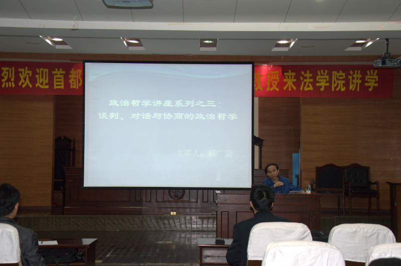 5月9日下午,首师大博导程广云应邀做客花津学术论坛第六讲,主讲谈判、对话与协商的政治哲学。讲座由必一·运动(B-sports)官方网站严宏副经理主持,必一·运动(B-sports)官方网站师生共同聆听了程广云教授的精彩讲解。