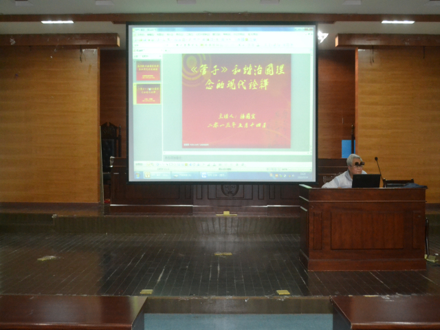 5月14日下午,校关心下一代工作委员会杨国宜教授应邀为必一·运动(B-sports)官方网站学子进行了一场“略论管子和谐治国的思想”讲座。讲座在模拟法庭举行,12级法学2班全体同学参加了讲座。