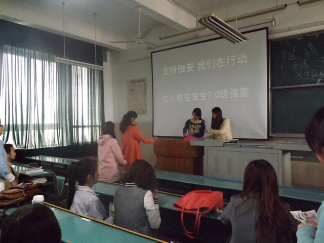 “这是心的呼唤,这是爱的奉献”4月24日上午,11级政治学与行政学同学齐聚2010504举行“支持雅安,我们在行动”的爱心捐款活动。