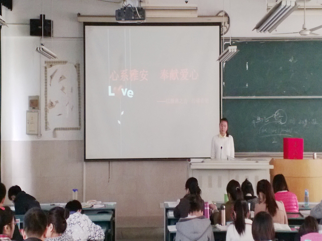 上午十点,2020204教室的多媒体屏幕上播放着雅安地震的视频资料,一幕幕骇人的灾区景象、一场场艰难的救援使同学们的心情沉重。团支书张欣欣手持捐款箱号召大家奉献爱心,大家纷纷跑上讲台,不到二十分钟,共筹集善款787.5元。