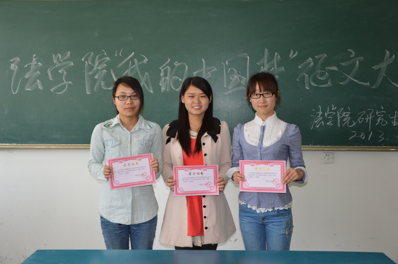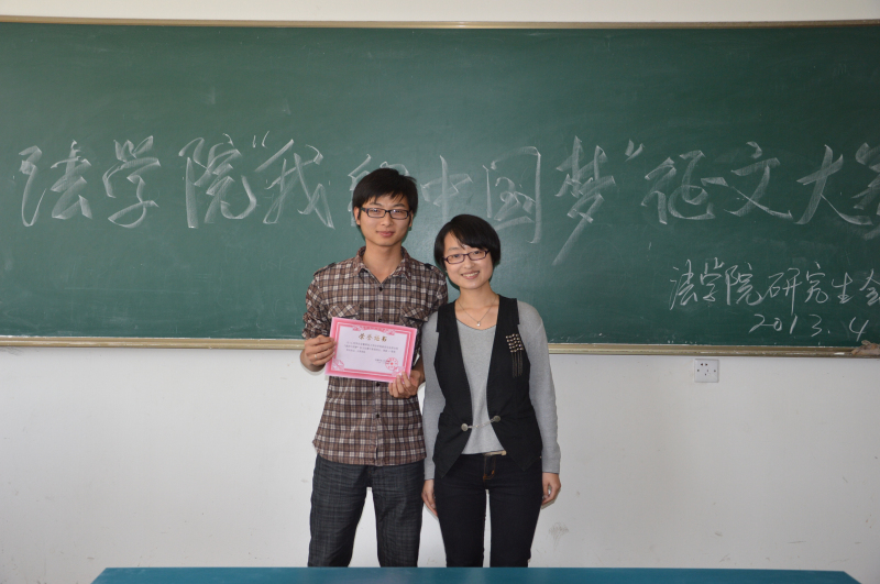 此次征文共分为两个阶段,分别为稿件征集与稿件评审阶段,历时三个星期,同学们踊跃投稿,经过评委细致、严谨的筛选,共有12篇优秀作品脱颖而出。获奖作品紧贴征文主题,多角度、多层次地展现了对“中国梦”的理解。比赛设置一等奖1名、二等奖5名、三等奖6名,政治学专业的许小龙同学以朴实的语言、真挚的情感打动评委从而获得一等奖,研究生会主席王超亲自为一等奖颁发奖状,并鼓励所有同学要积极参加此类活动,丰富研究生生活。此后,评委们将会给参赛选手提出文章的修改意见,以便能够符合学术精神入编赭津论坛。