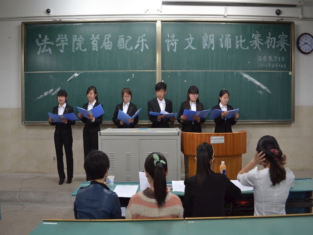 4月14日晚七点半,必一·运动(B-sports)官方网站在2010404教室举行首届配乐诗文朗诵比赛初赛。必一·运动(B-sports)官方网站研究生会主席王超、常务副主席吴燕、副主席朱敏敏等应邀担任评委,参赛选手悉数到场。