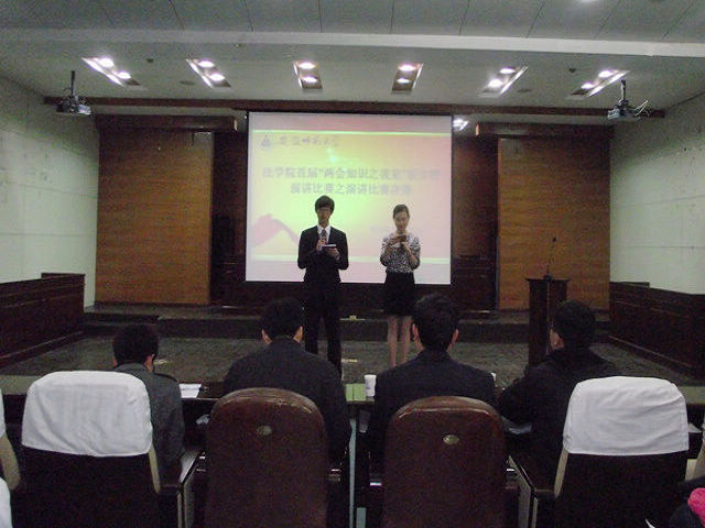 经过层层选拔,共有十二名选手进入本次决赛。他们关注两会热点,围绕“环境保护”、“民生问题”、“就业形势”等时政热点,激情澎湃、言辞流畅地表达了对中国现状的感悟,对美丽中国的期许。台上参赛选手情绪昂扬,台下亲友团热情呐喊,将比赛现场的气氛推向高潮。经过两个多小时的激烈角逐,来自11法学的佘杨玲和12法学的柳莹凭借出色的表现在决赛中拔得头筹,获得比赛一等奖。