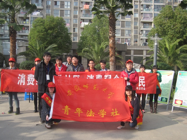 一年一度3.15国际消费者权益保护日如期而至。为了进一步弘扬法制理念,提高消费者消费维权意识,青年法学社组织志愿者于3月15日下午两点走进汇成名郡普法。该活动由安师大青年法学社主办,鲁港街道团工委、汇成社居委、11法学一班共同承办。