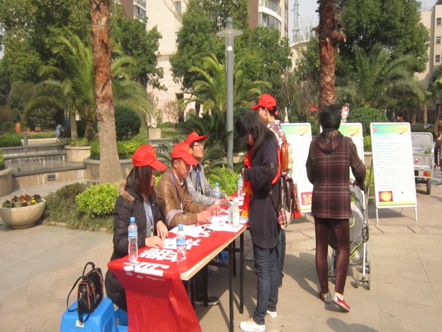 活动以“加强法律法规宣传,维护消费者权益”为主题。为达到宣传目的,普法志愿者联合社区工作人员设立法律咨询台,由法学1班张慧、伍财民、胡晓光等同学为前来咨询的居民进行现场解答。另外一些志愿者冒着炎炎烈日深入社区分发宣传资料,广泛宣传 《消费者权益保护法》、《食品安全法》等法律法规知识。活动现场的宣传展板前不时有居民驻足阅读、学习。