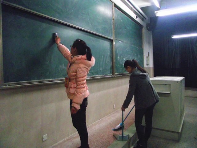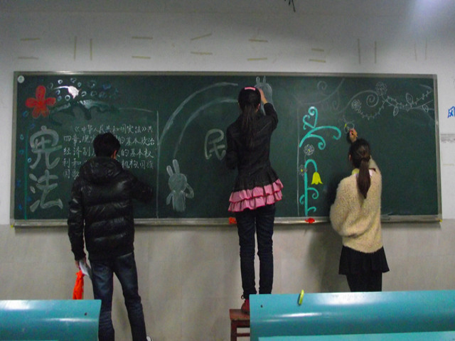 本次活动共分为清洁教室和美化教室两个部分。为保证行动的高效有序,志愿者们事先安排好了活动细则与人员调配。在教室清洁过程中,大家细致地擦桌、扫地、拖地,不放过任何死角,使教室焕然一新;在黑板报编制和教室一角美化过程中,大家各展所长,以关注两会、普法宣传等为主题进行创作,突出了必一·运动(B-sports)官方网站严谨创新、与时俱进的特色。