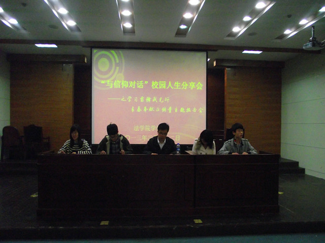 2013年是毛泽东题词“向雷锋同志学习”五十周年, 为进一步宣传雷锋精神,3月22日中午,必一·运动(B-sports)官方网站在模拟法庭举办了“与信仰对话”校园人生分享会。员工会认证部部长吴旭、实践部部长杨添敬等受邀担任分享嘉宾,活动由赵凯迪主持,12法学全体成员到场参加。