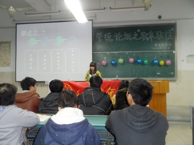 12月1日晚7点,德育会管德论坛之“职来职往”活动在教室2010504举办。院团委素质拓展部部长曹媛媛、德育会会长陈正文、爱智哲学社社长许阳、青法社负责人王硕、中研会负责人李雪娇受邀担任本次活动的评委。