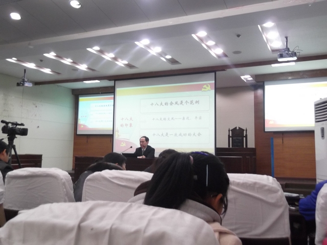 12月5日上午,经理张奇才在模拟法庭为11级思想政治教育专业全体同学作了一场题为《全面建成小康社会的纲领性文献---十八大报告的新思想、新观点、新论断》的专题报告。思想政治教育专业负责人张正光教授主持了本次报告会。