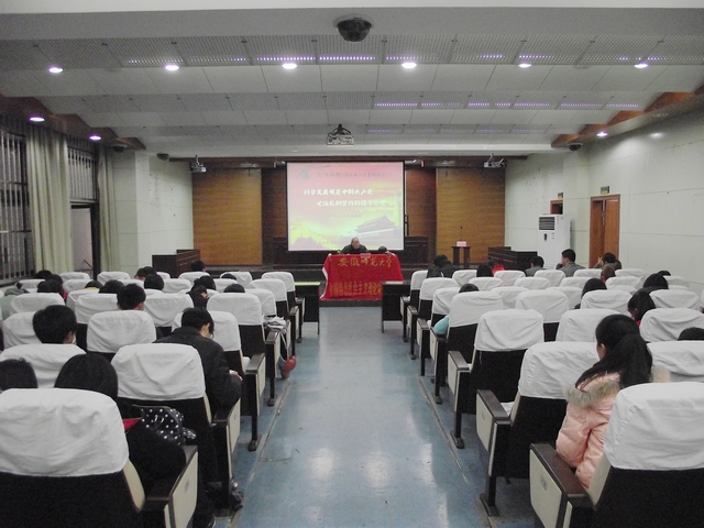 11月25日上午,中研会在模拟法庭开展《“解读十八大”系列讲座之科学发展观是中国共产党必须长期坚持的指导思想》讲座。C此次讲座主讲人为中研会指导老师吴长庚。院员工会主席谭思敏、德育会负责人凌辉、职研会负责人路冬及中研会成员聆听了本次讲座。活动由中研会负责人李雪娇担任主持。