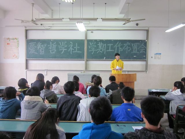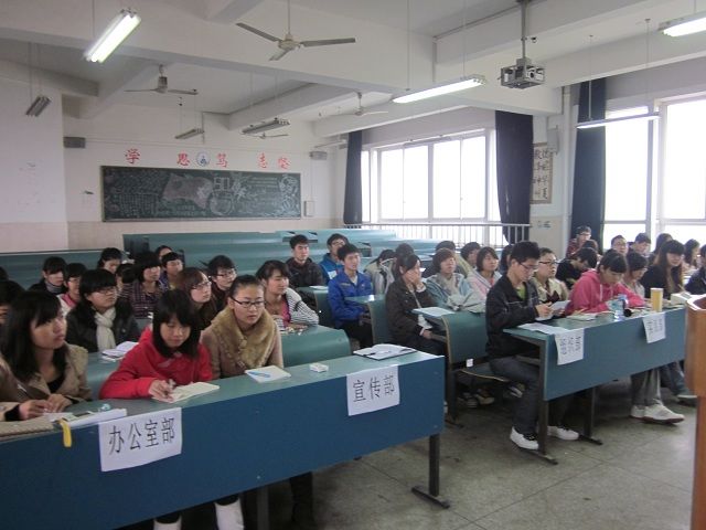 11月10日上午9点,爱智哲学社在2010504教室举行第一次理事大会暨工作布置大会,社团各部门部长、理事全部参与了此次大会。