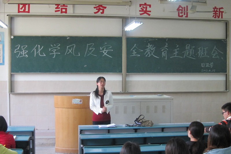4月25日下午2点半,10级法学专业在2020104教室举行强化学风及安全教育主题班会。