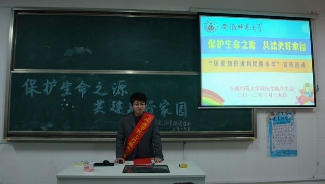 3月19日下午1:30,员工会一行10人准时抵达了利民路小学。在经过了一系列的准备之后,一堂特殊的班会课在2点正式开始了。本堂课共分为了主题演讲、有奖竞答以及“说出我的环保心愿”三个部分。主题演讲一开始,主讲人陈敏辉首先播放了一段关于爱护水资源的公益广告,然后向大家讲述了目前我国乃至全世界的水资源短缺情况,并利用PPT具体展示了如黄果树瀑布等正在减少的水资源的事例,让大家对保护水资源的必要性有了更直观和深刻的理解。同学们都被陈敏辉讲述的内容所吸引,聚精会神的听讲。由于同学们都仔细的听了上一轮的演讲,因此在有奖竞答环节,大家都积极踊跃的回答问题,场面十分热烈。最后,这堂特殊的班会课在每个同学都写下了自己关于节约用水的小小心愿后圆满结束了。小朋友们都意犹未尽,纷纷表示希望哥哥姐姐们明年还能再来。