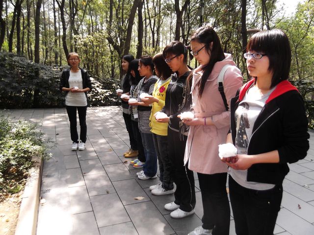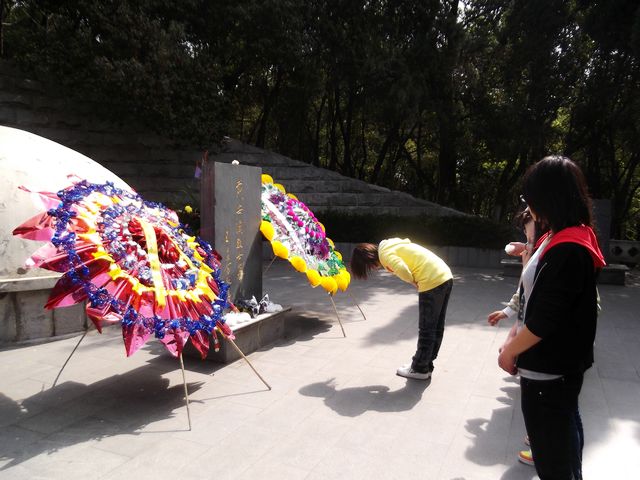 首先团支书陈琪波向同学们介绍了戴安澜将军为保卫国家而献出青春热血的英雄事迹,随后全体同学在戴将军墓前默哀3分钟表达大家的敬意,最后,同学们向戴将军献上了自己亲自制作的悼念小白花,祭扫活动在庄严肃穆的气氛中结束了。